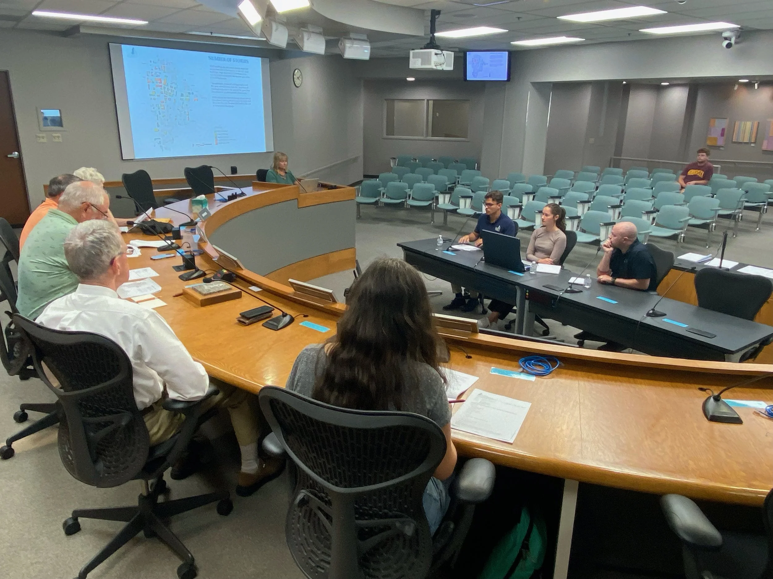 Presenting findings to the Champaign Plan Commission.